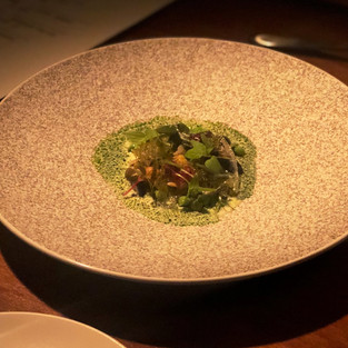 據說在氧氣很好的地方吃東西會比較美味,VG 就設計了這個超仙的造景放在門口,釋放大量的氧氣,打開大家的味覺大門;這股叢林感也巧妙延伸到料理上,菜色揉和了發酵、醃漬、炭火、煙燻的處理方式,闆娘回來之後還對那道〈季節貝類〉讚不絕口 。